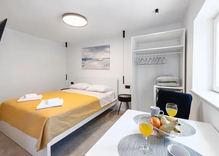 Este apartamento está equipado con una pequeña cocina con electrodomésticos para preparar sus propios platos. Bar & Restaurant Orsan, una de las opciones para comer, está a 30 metros. La parada de autobús más cercana, Pomorska skola, está situada muy cerca del Garden Oasis Studio.